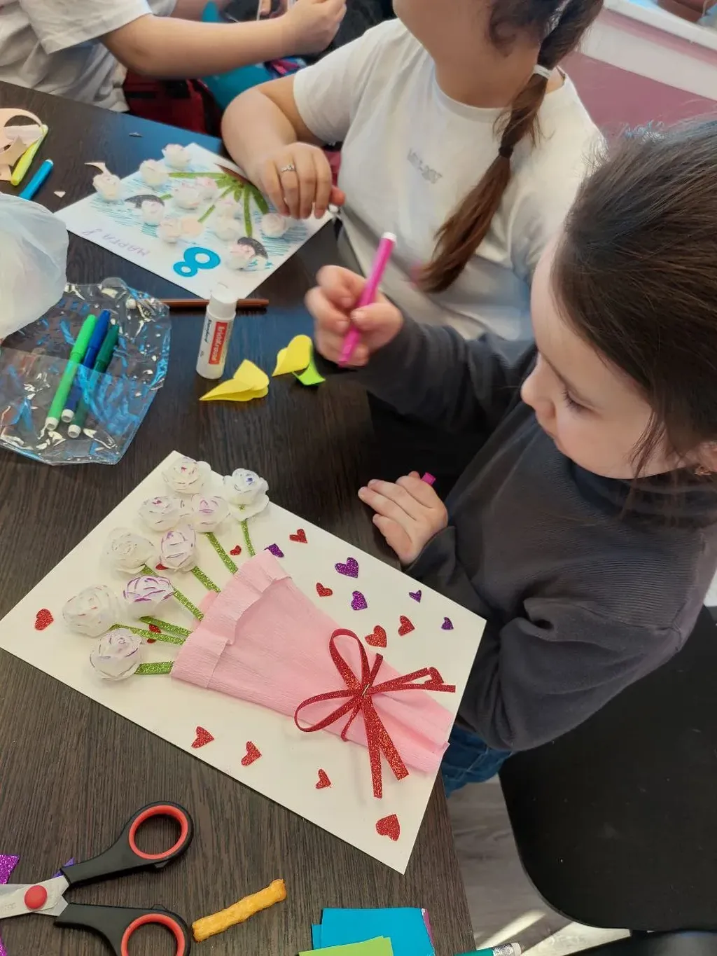 5 марта в детском отделении центральной библиотеки г. Полесска совместно с учителем Полесской СОШ Григорьевой М.А., к международному женскому дню проведен мастер-класс «Мамин день-8 марта», где ребята создали яркие и душевные открытки-подарки для своих матерей и бабушек. Ведь что может быть лучше подарка, сделанного своими руками, ведь он хранит в себе частичку души и любви. И получать такой подарок вдвойне приятнее, ведь знаешь, что он сделан с теплотой и желанием подарить радость! Открытки получились красивыми и праздничными, ребята приложили усилия, чтобы порадовать своих любимых мам и бабушек.